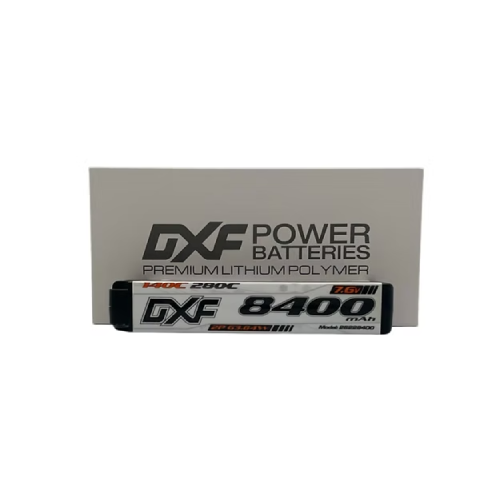 The DXF 2S 140C Graphene HV 8400mAh LiPo HiV Battery is the perfect battery option for anyone looking for a lightweight and high capacity LiPo HiV Battery. Weighing only 315 grams, this 2S pack is lighter than a standard 2S pack, with much higher capacity. These advancements lead to increase in both voltage and punch throughout a run.