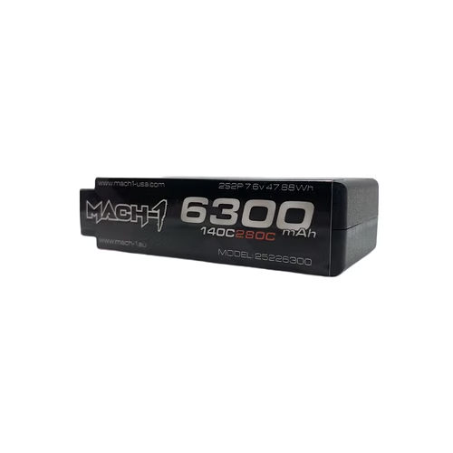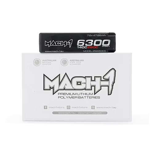 Additionally, when compared to conventional LiPo batteries Mach-1 batteries are lighter, providing a higher capacity per gram ratio. With 7.6V nominal voltage, 140C discharge ratings, incredibly high charge rates and ten different models to choose from, Mach-1 packs are perfect for racers that demand the absolute best.